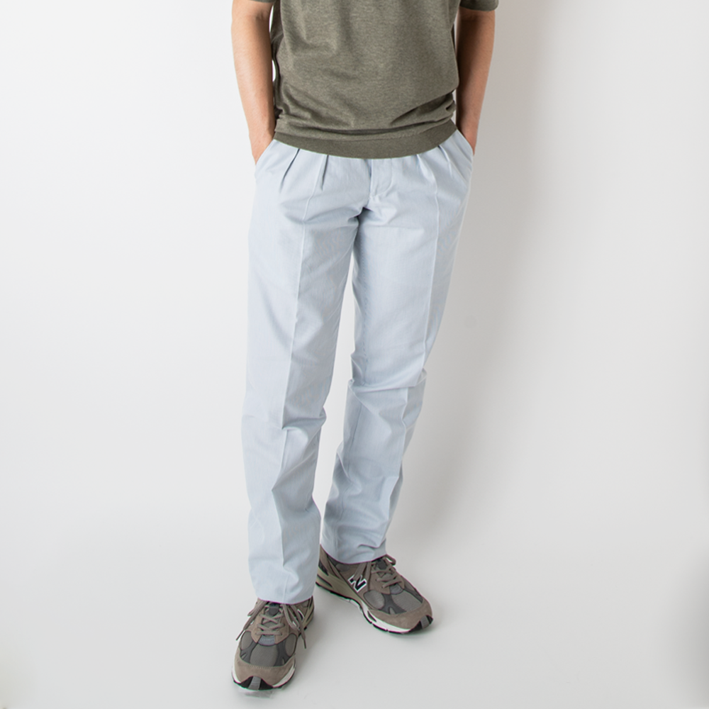 今季は新作でコードレーン生地を使用したトラウザーズも登場です。
