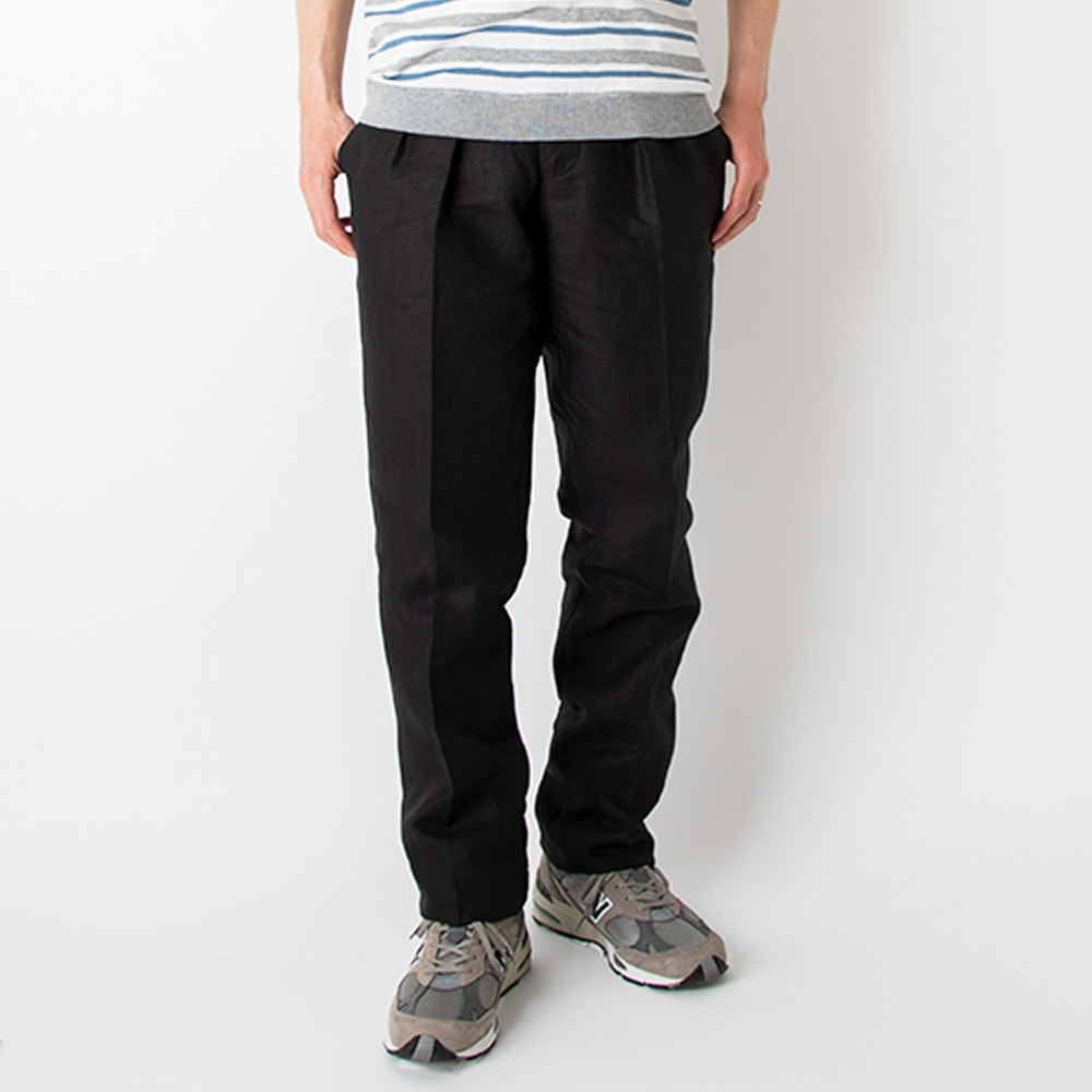 シルエットはリネントラウザー同様の形でリラックス感がありながらも、ややテーパードが効いています。
