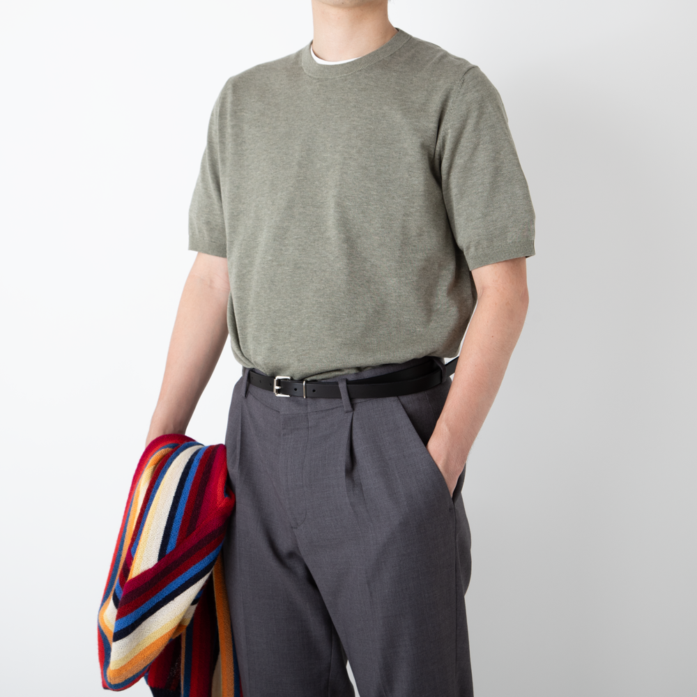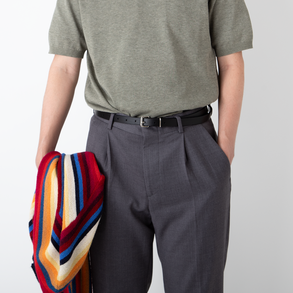 3.5 mm の皮から 1 ピースにカットした上質なナローベルトで長めにカットしたレザー部分は垂らしてウエストのアクセントにもなります。