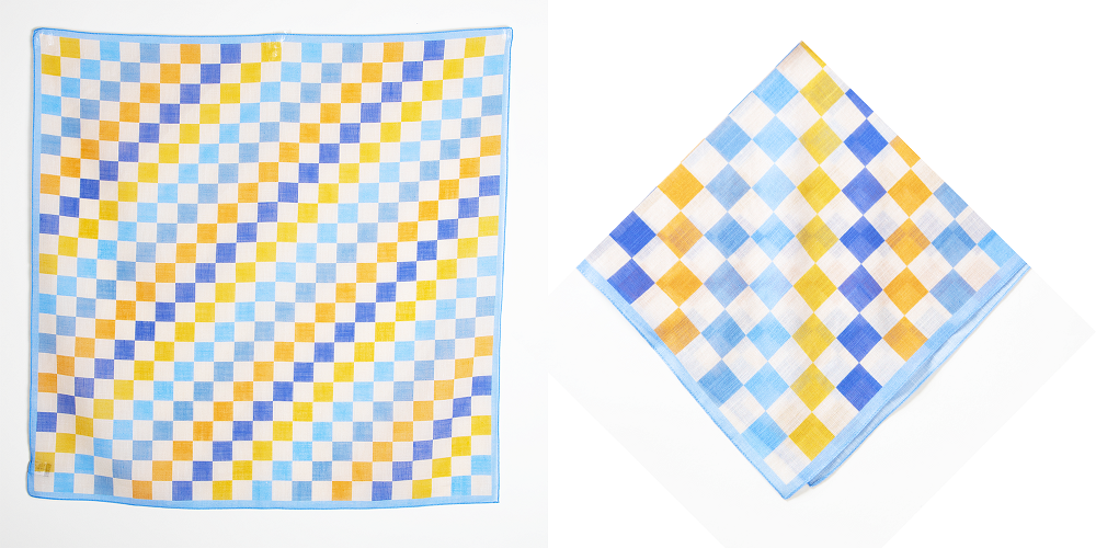 カラフルなブロックチェックを用いたコットンリネン素材のスカーフ。