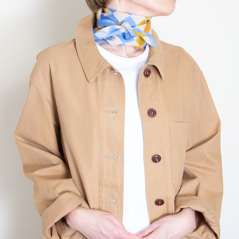 使いやすい65センチの正方形なので、首元だけでなく、ヘアアクセサリー、バッグのアクセントとしてご利用頂けます。