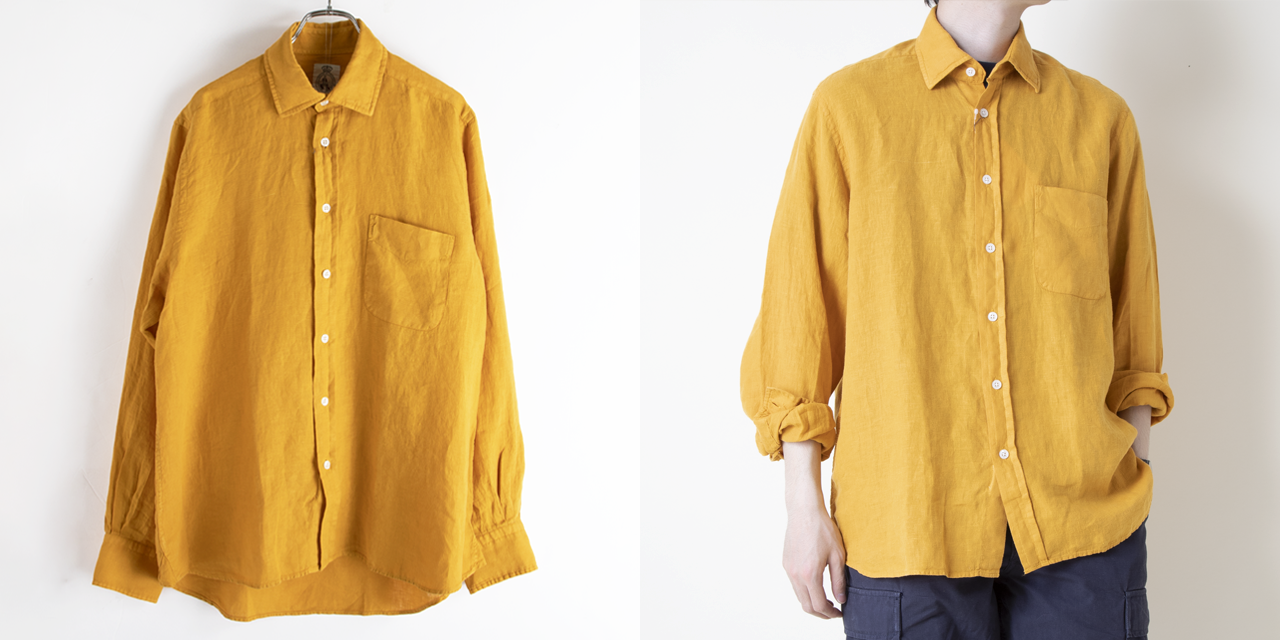 製品染めの柔らかな質感。リネン100%のヴィンテージリネンシャツ。