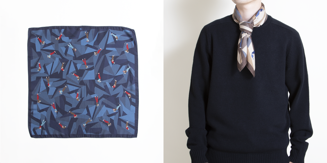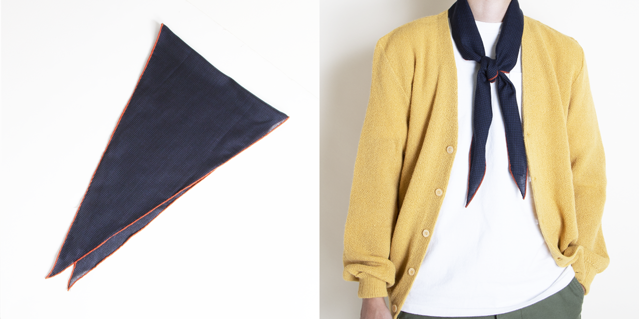 細長い形状が特徴的なひし形スカーフ。