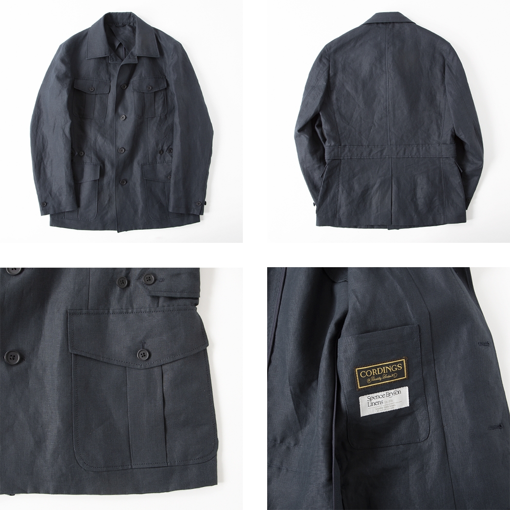 スペンスブライソンのアイリッシュリネンを使用したサファリジャケットが入荷しました。 SPENCE BRYSON社は1891年創業し、品質保持のため1928年に設立されたアイルランド・リネン業界の管理組織『アイリッシュ・リネン・ギルド』加盟しています。 その高い品質から、英国王室御用達メーカーとなっており、日本では特にイギリス服好きにとても人気の素材です。 世界一美しいと言われる光沢感と、その優しい肌触りが最大の特徴です。