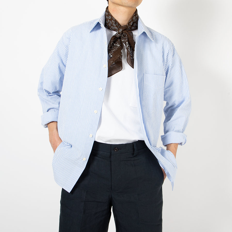 タイドアップしてジャケット代わりの着こなしからカットソー、ポロシャツなど幅広いコーディネートが愉しめる1着です。