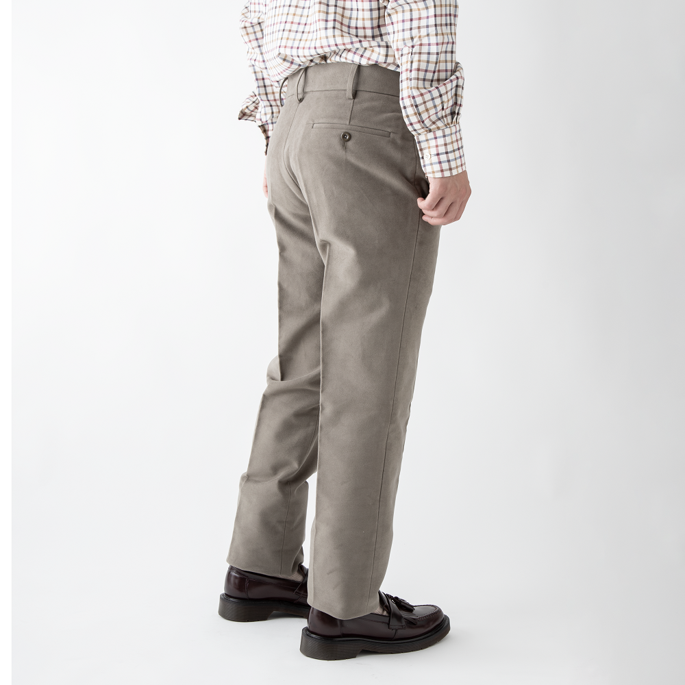 元々は鉄鋼労働者のために作られた柔らくて丈夫なモールスキン。 イギリスの名門Brisbane Mossの生地を使用、 14ozのヘビーウェイトで 本国では30年前のモールスキンを着用している顧客がいるほど。 新色は『Lovat』というお色です。 グレージュに少しグリーン系を加えたような絶妙な色味です。 コーディネートしやすい使い勝手の良いお色だと思います。
