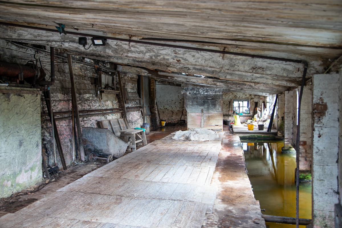 皮なめし工場のそばには小さな川が流れており、この小さな川の水と湖水地方やウェールズ産のオークの樹皮がなめし液の原料に。