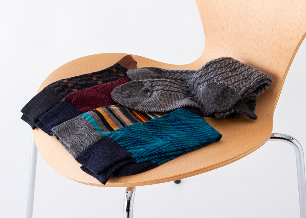 今回新たにご用意したカシミアソックス1足(通常¥12,000-相当)が含まれた大変お得な5足セット(メンズ)は¥5,500-税込(※送料別)