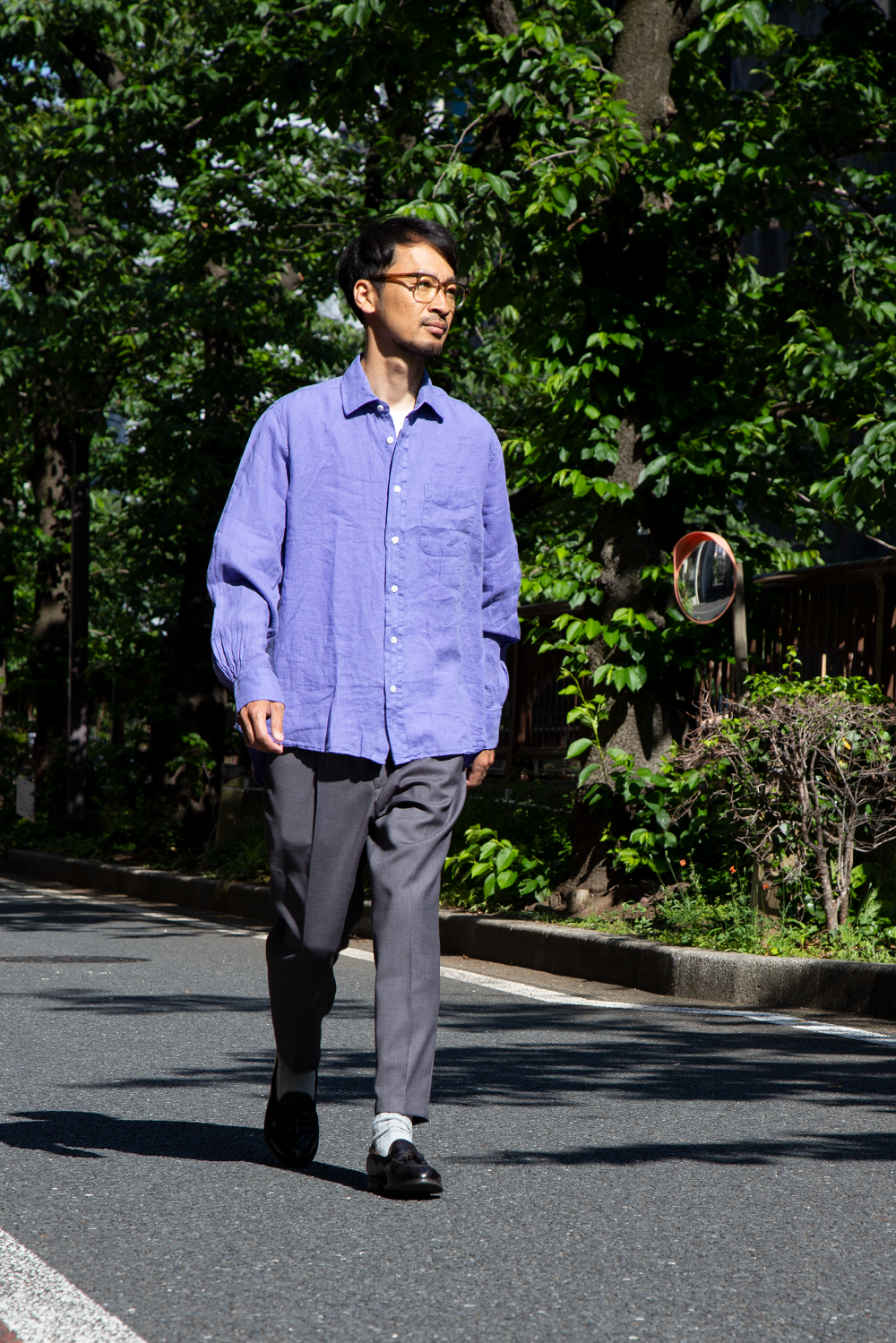 ガーメントダイで仕上げられたリネンはとても柔らく、色のフェード感も◎。