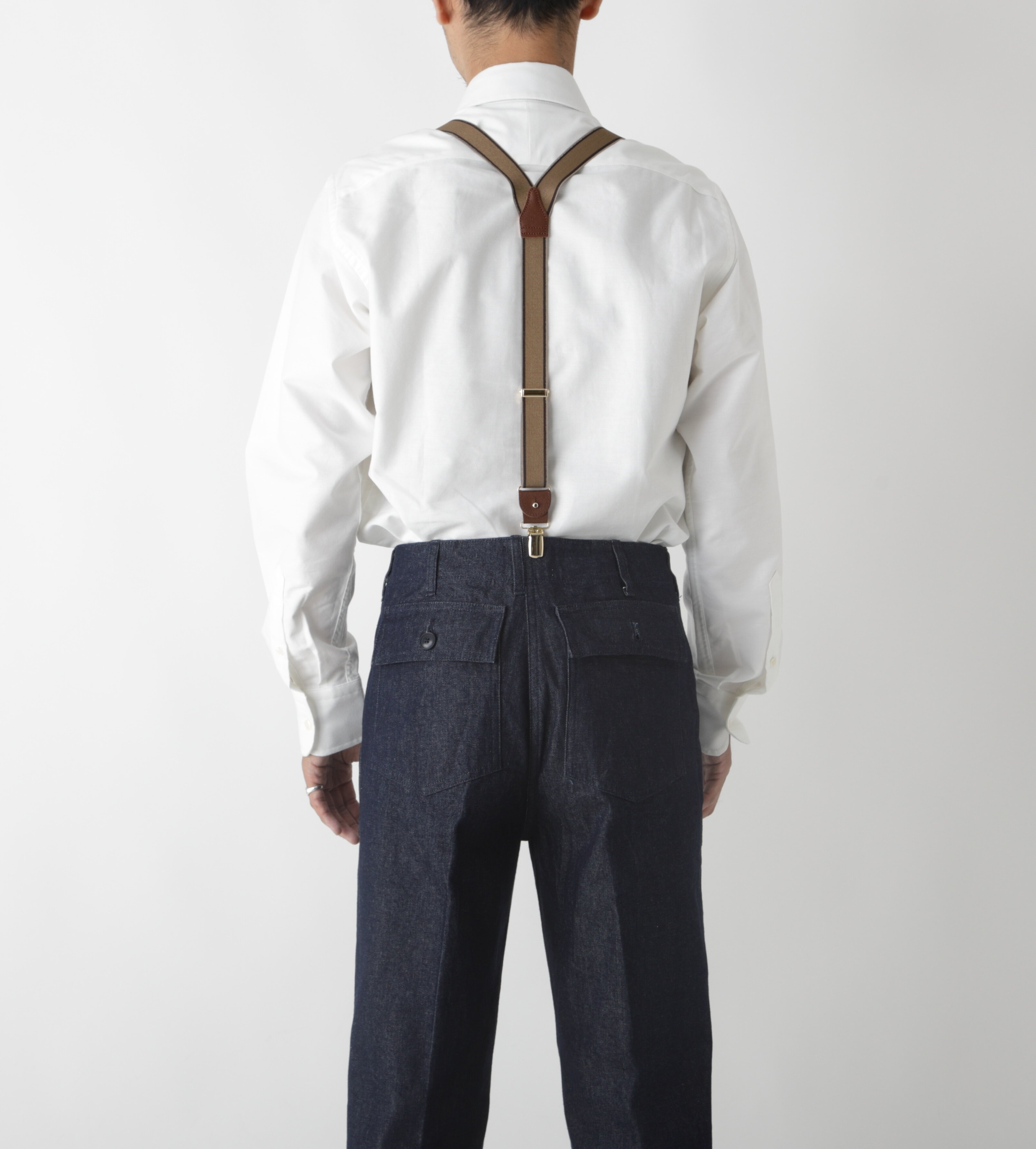 Y型タイプは、背中の部分が1本のラインになるのですっきりとしたファッション性の高いサスペンダー。