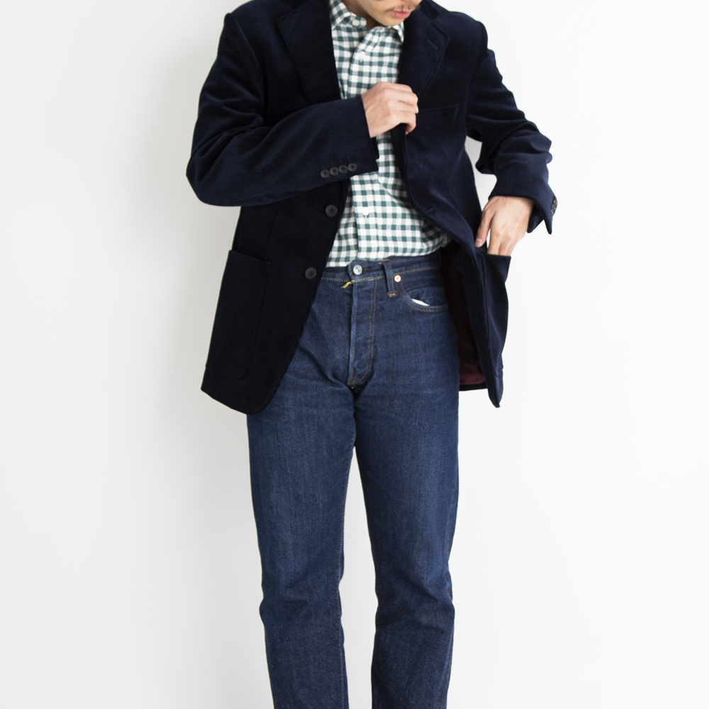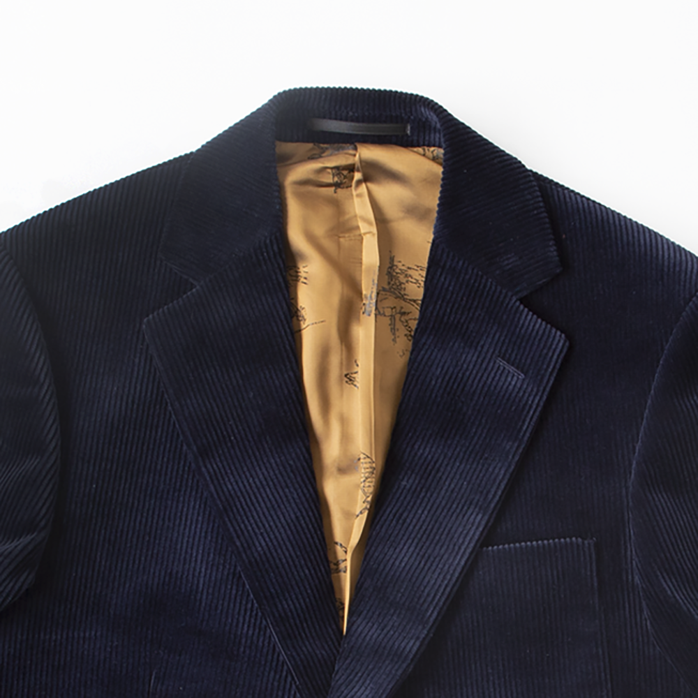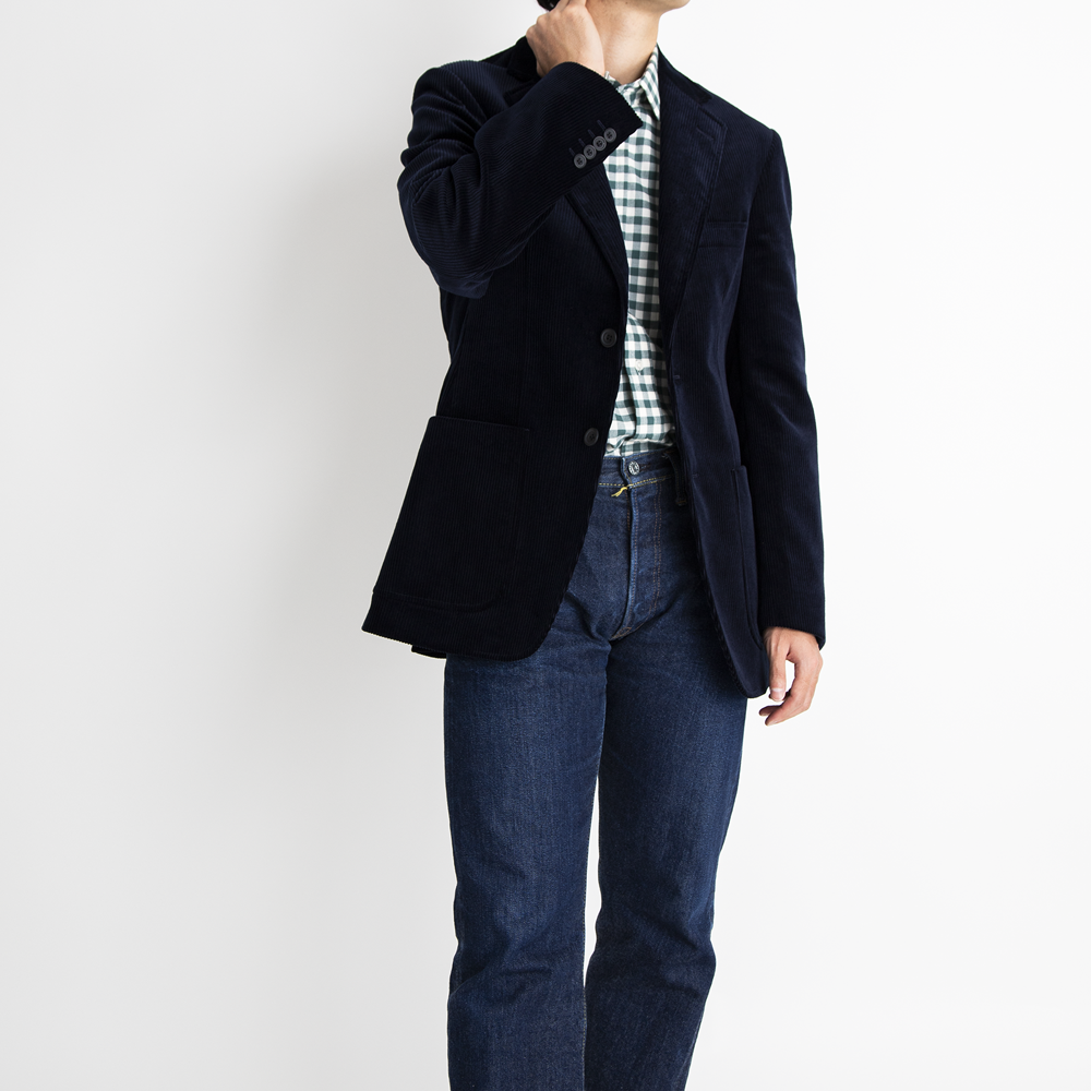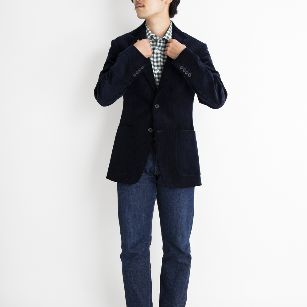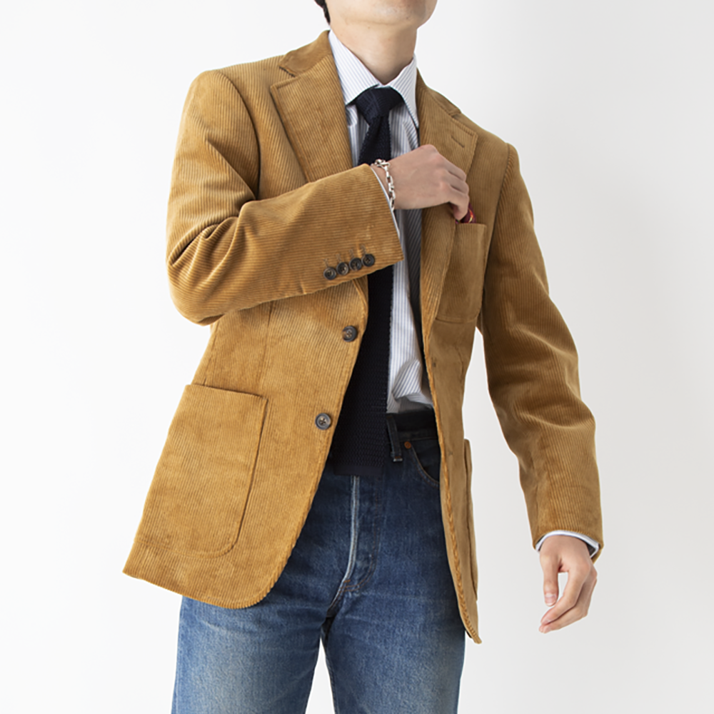太畝コーデュロイ生地独特の光沢感もあり非常に高級感のあるジャケットに。