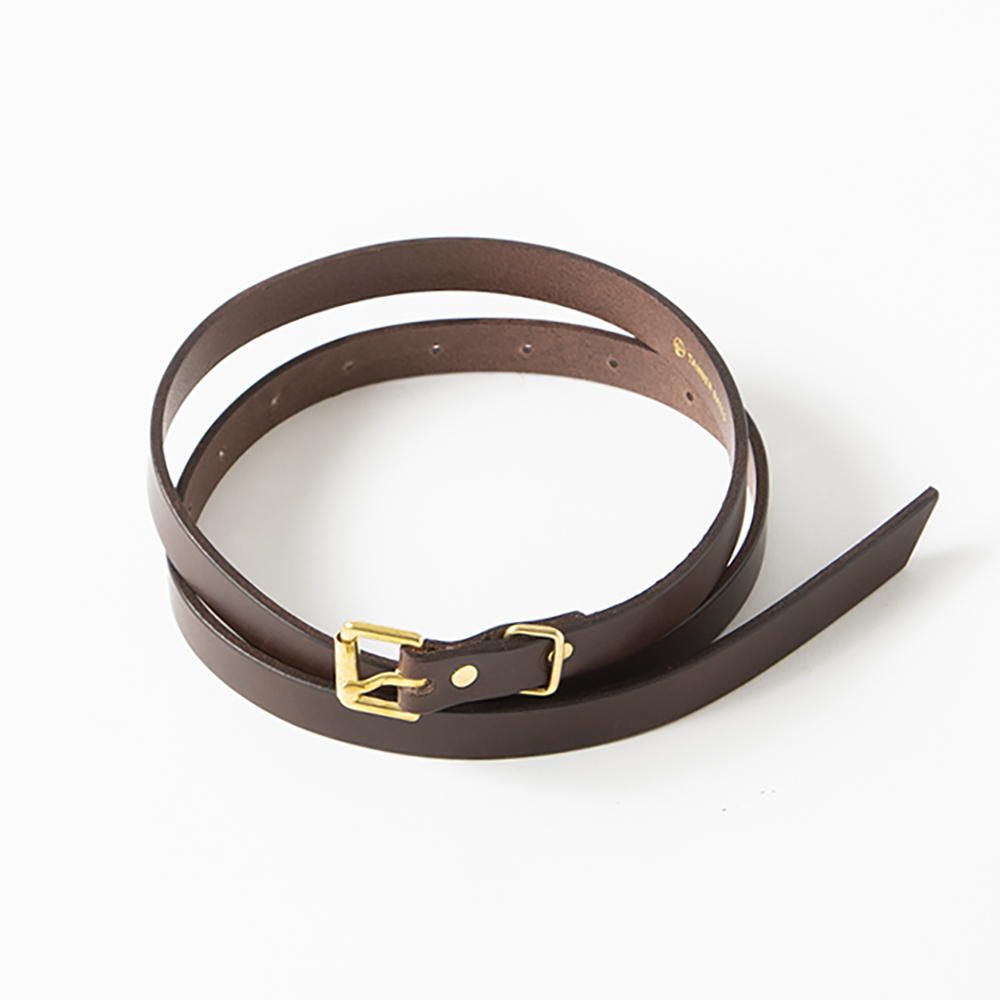 3.5 mm の皮から 1 ピースにカットした上質なナローベルトで長めにカットしたレザー部分は垂らしてウエストのアクセントにもなります。