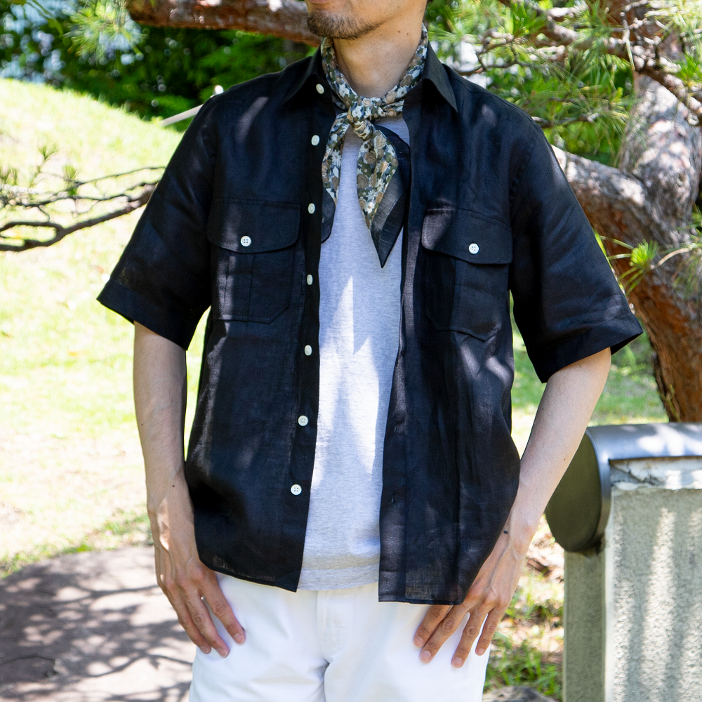 CORDINGS アイリッシュリネン半袖オーバーシャツ SHJ343 Black【MENS】 ¥31,900 (税込)