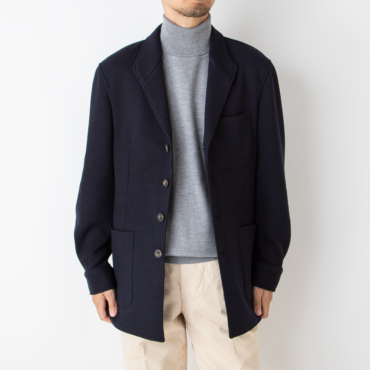 コーディングスのテバジャケットはウールのニット生地を使用。暖かく、軽くて動きやすい、カジュアルな着こなしもできる万能ジャケットです。